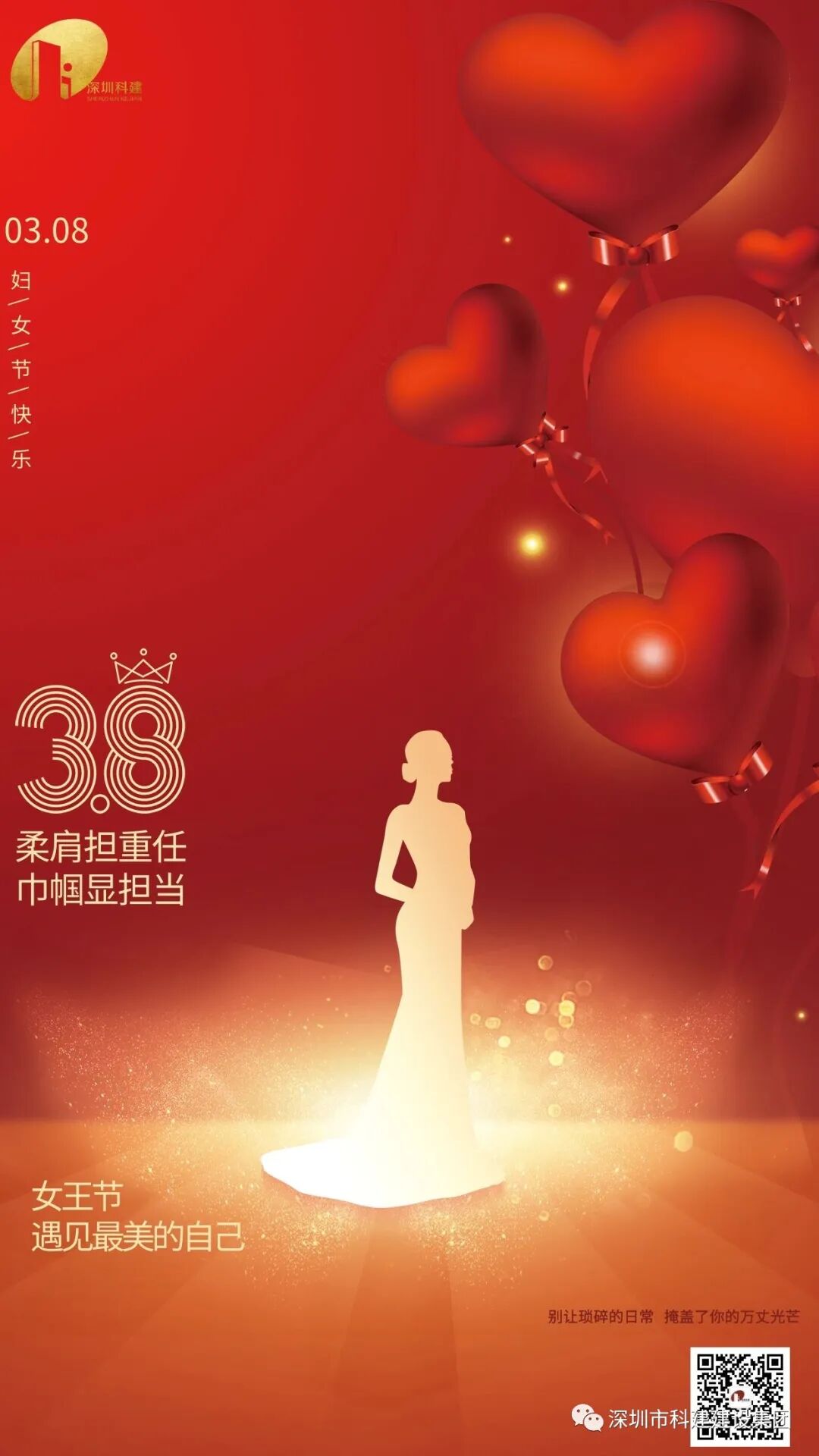 愿你遇见更美好的自己!END 深圳市科建建设集团冰心曾说,世界上若没有女人,这世界至少要失去十分之五的真,十分之六的善,十分之七的美。此言不虚,就如没有阳光,花不茂盛,没有女人,就没有母亲,既没有诗人,也没有英雄。