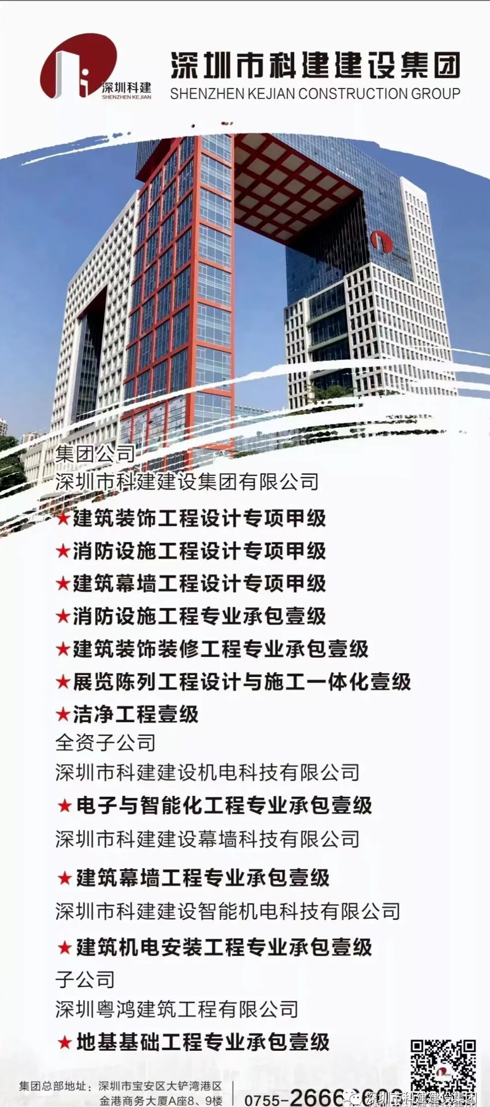 深圳市科建建设集团有限公司成立于2002年2月,注册资本11573万元。科建建设集团一直在行业内精耕细作,提供各种专业的工程服务帮助、综合解决方案及承建管理服务。我们始终以“做有社会责任感的工程公司”为己任,视服务质量为生命,打造优质、高效、廉洁工程,把政府放心、公众满意作为我们孜孜不懈的追求。