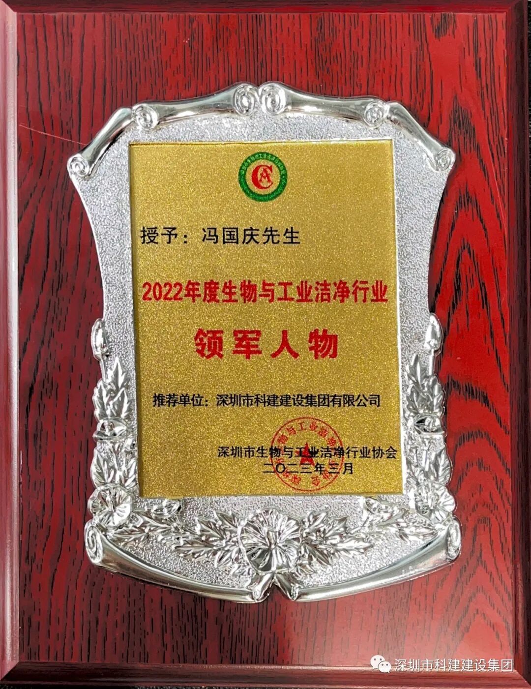 深圳市科建建设集团总裁冯国庆被评为2022年度洁净行业领军人物。