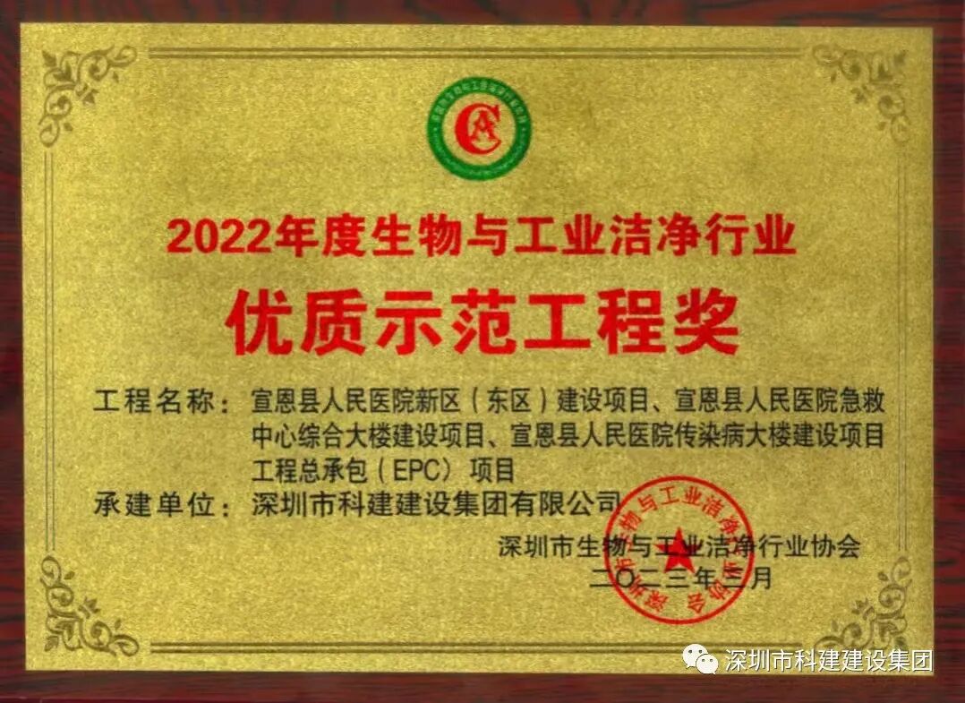 在过去的一年中,集团参建了许多洁净工程项目,其中“宣恩县人民医院新区(东区)建设项目、宣恩县人民医院急救中心综合大楼建设项目、宣恩县人民医院传染病大楼建设项目工程总承包(EPC)项目”被评为2022年度生物与工业洁净行业优质示范工程奖。