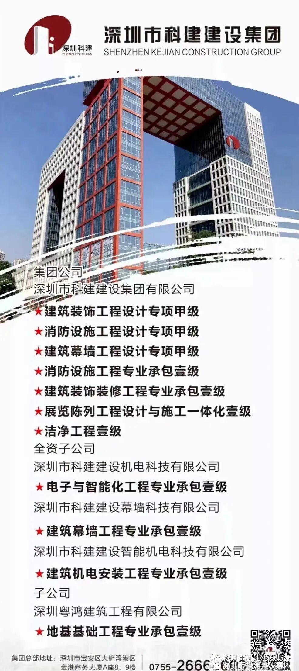 图为精英宣誓深圳市科建建设集团成立于2002年2月,集团母公司为深圳市科建建设集团有限公司,拥有装饰设计甲级、消防设计甲级、幕墙设计甲级、消防设施一级、装饰装修一级、展览陈列与施工一级、洁净工程一级资质等。集团子公司有深圳市科建建设机电科技有限公司,拥有电子与智能化一级资质。深圳市科建建设幕墙科技有限公司,拥有建筑幕墙一级资质。深圳市科建建设智能机电科技有限公司,拥有建筑机电一级资质。科建建设集团一直在行业内精耕细作,提供各种专业的工程服务帮助、综合解决方案及承建管理服务。我们始终以“做有社会责任感的工程公司”为己任,视服务质量为生命,打造优质、高效、廉洁工程,把政府放心、公众满意作为我们孜孜不懈的追求。