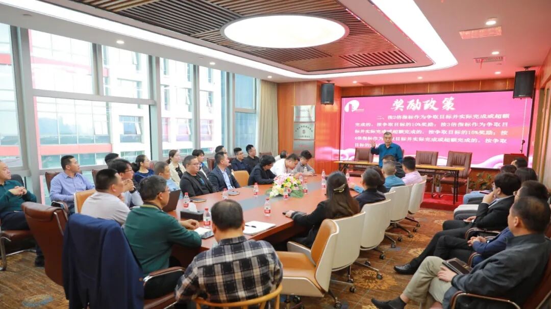 图为业绩冲刺誓师大会现场集团总裁冯国庆为大家讲解了奖励政策。冯总引用了王阳明的话鼓励大家:“志不立,天下无可成之事”,今天我们在这里,就是要为我们自己、为我们的业绩目标立志!业绩是企业的根基,也是企业的生存之本,我们的营销团队将怀揣着一种坚定的信念,肩负重任,踏上一个新的征程,2023年让我们全力以赴,克服一切困难,并肩作战,奋力实现2023年的业绩目标,为公司贡献力量!